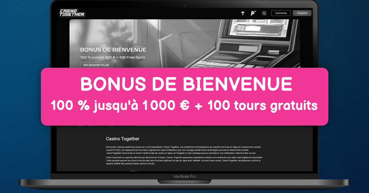 Casino Together vous accueille en France avec jusquà 500 € de bonus de bienvenue et 100 tours gratuits pour bien démarrer. Les conditions de mise sont x35 sur le bonus et sur les gains issus des tours gratuits. Le site opère sous licence de la Malta Gaming Authority pour une expérience encadrée et transparente. Profitez dune large sélection de machines à sous, jeux de table, live casino, jeux à jackpots progressifs et game shows. Les titres proviennent de studios reconnus comme NetEnt, Pragmatic Play, Evolution et Playn GO avec un RTP élevé sur de nombreuses sorties. Jouez partout sur mobile grâce à une interface fluide sur iOS et Android. Déposez via carte bancaire, virement bancaire ou portefeuilles électroniques et retirez vos gains en 24 heures après vérification du compte. Avantages clés pour les joueurs en France incluant support en français 24h sur 24 et outils de jeu responsable. Bénéficiez aussi doffres régulières dont un cashback hebdomadaire selon votre activité. Rejoignez la communauté et découvrez un casino en ligne conçu pour des sessions sûres et rapides.